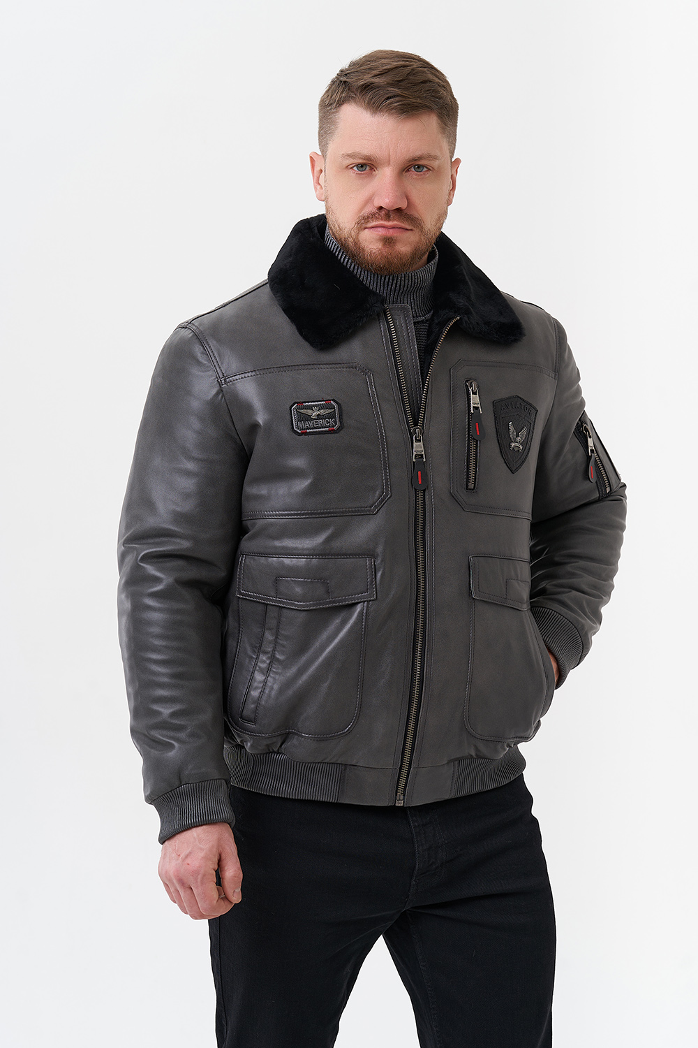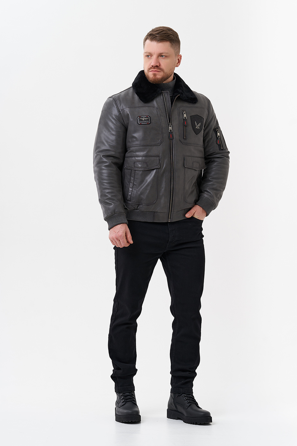 Тип ворота - отложной, отделка овчина черная