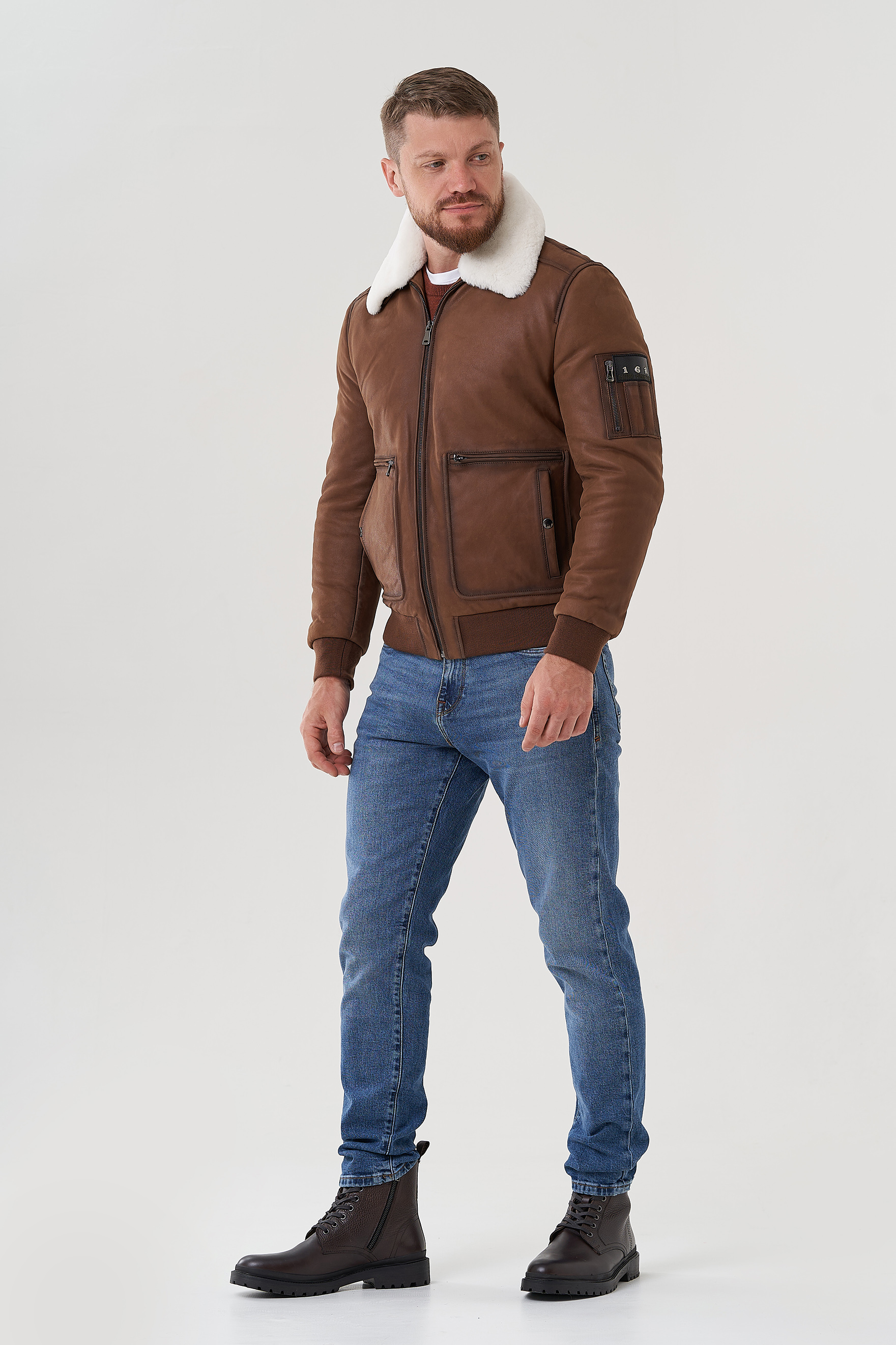 Тип ворота - отложной, отделка овчина белый