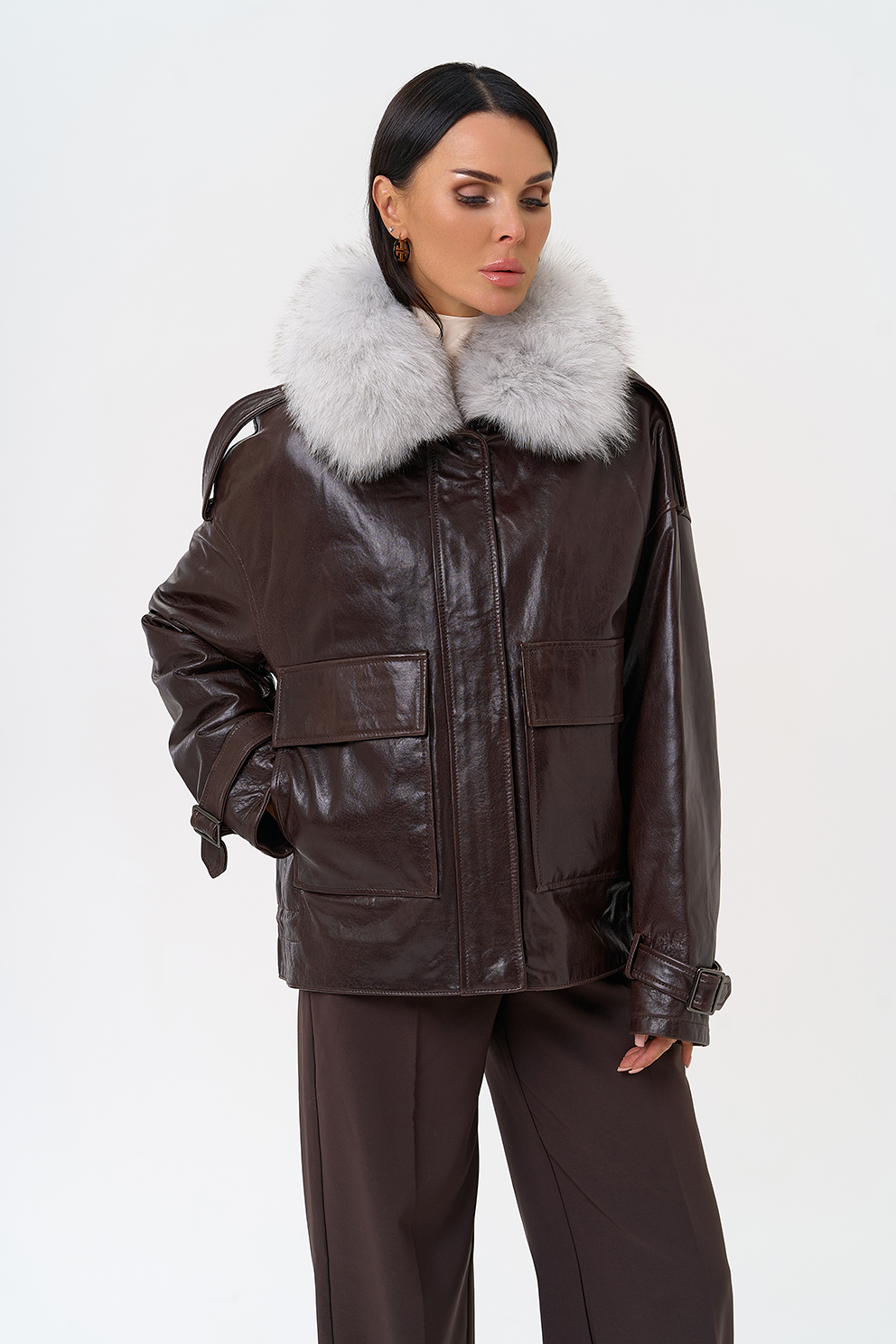 Тип ворота - отложной воротник, отделка песец