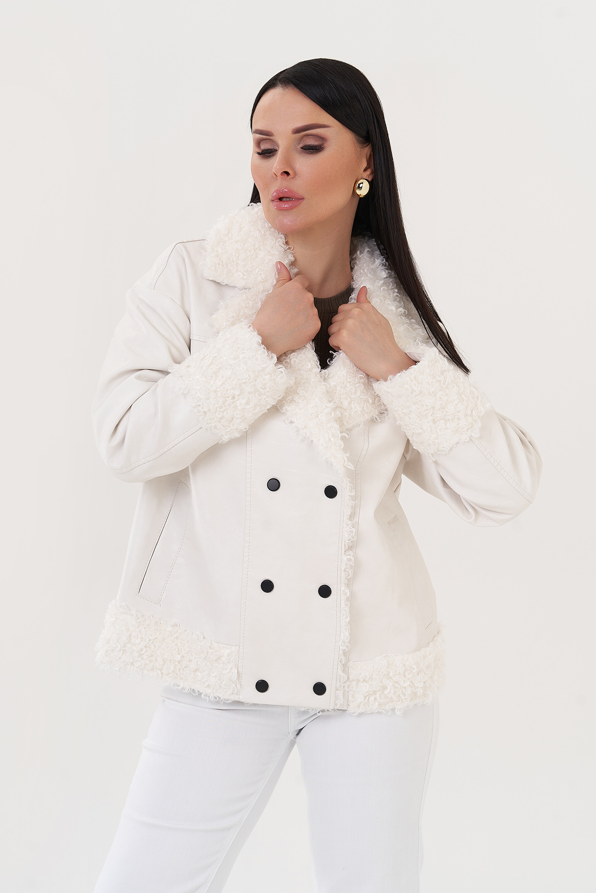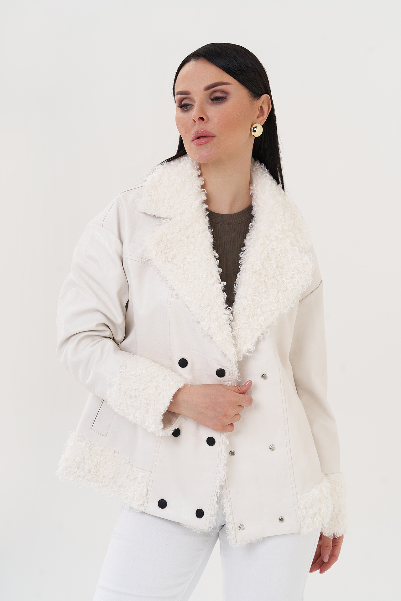 Крой воротника - английский воротник, отделка эко мех