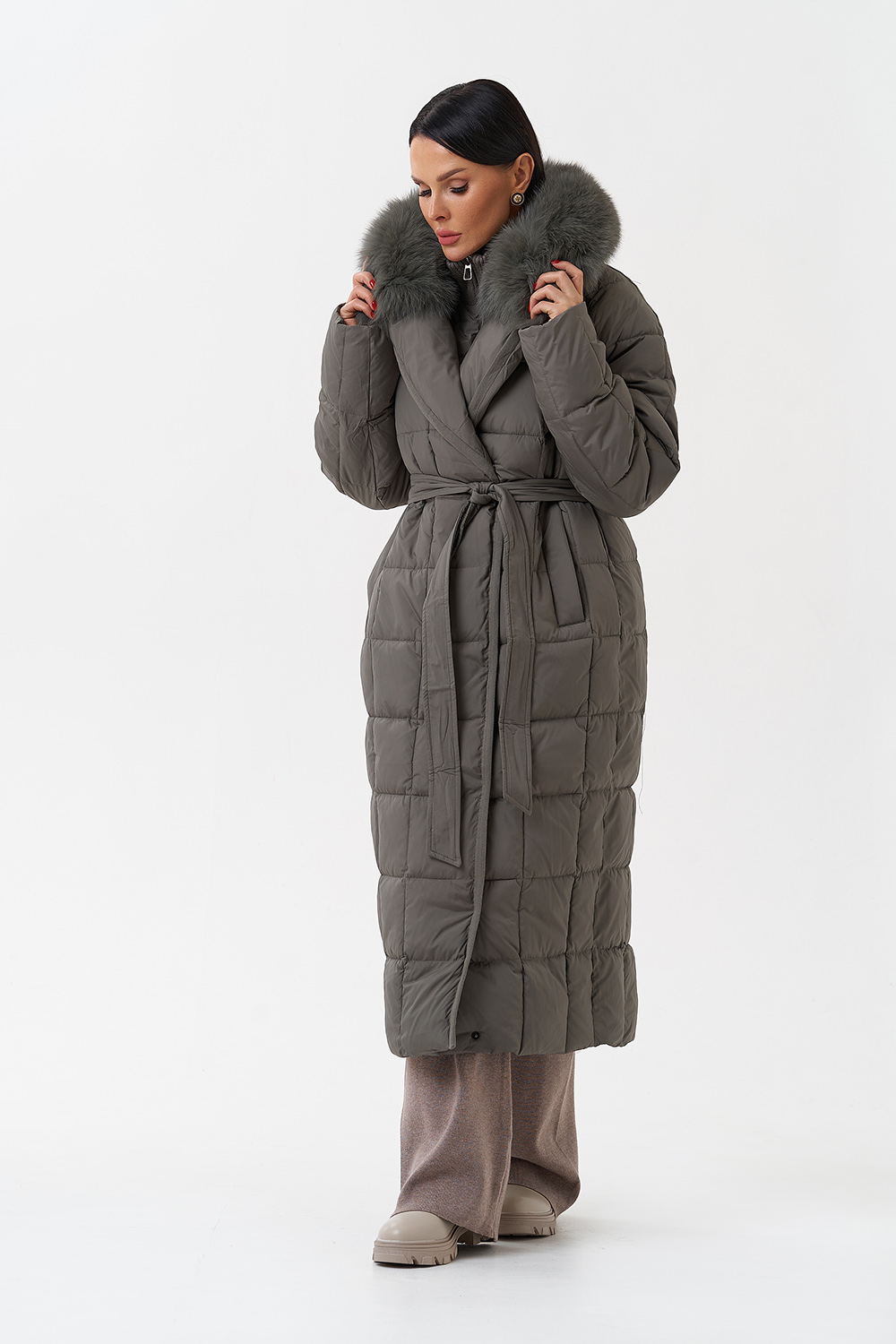 Крой воротника - английский воротник, съёмный, отделка натуральный мех